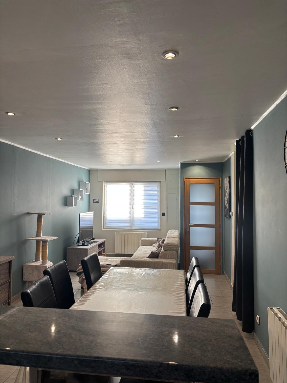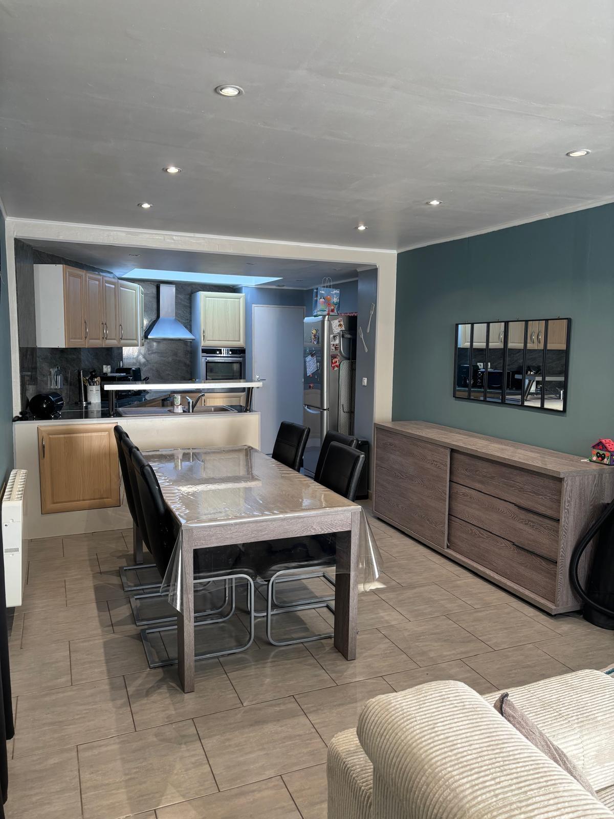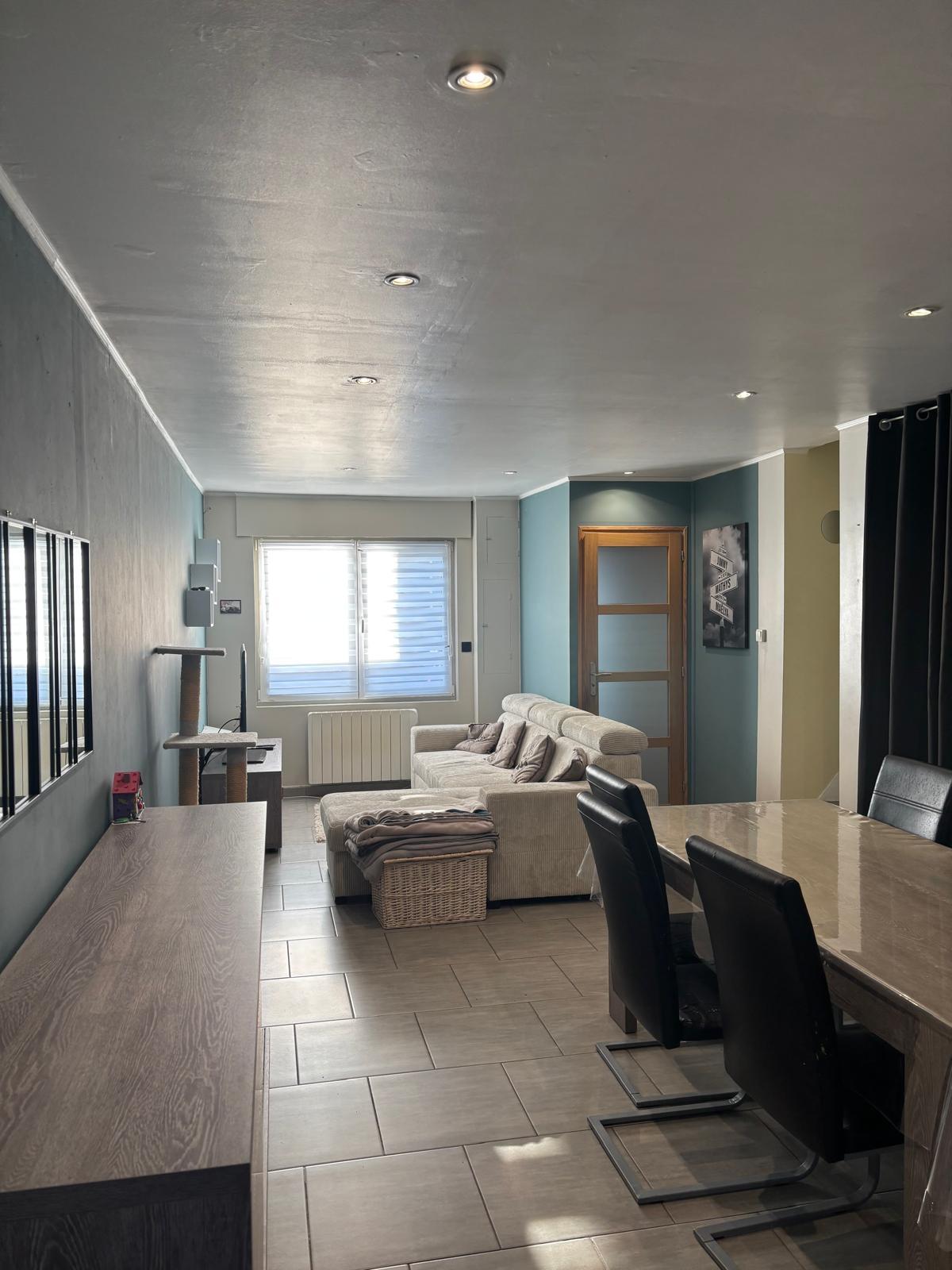 Belle pièce de vie traversante avec salon cocooning et salle à manger